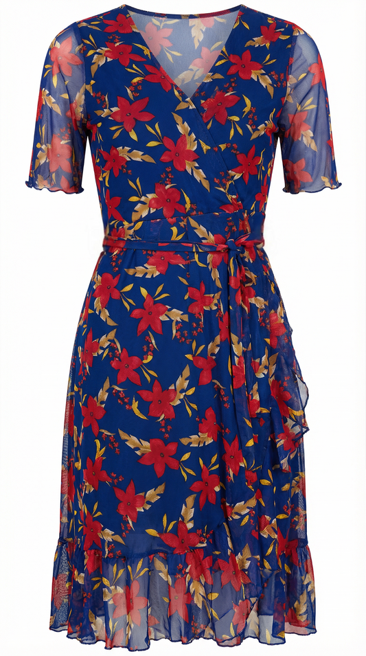 Falda Clásica con Pretina Ancha - Floreado Rojo