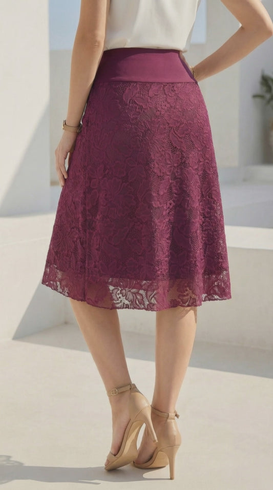 Falda Encaje 3/4 - GUINDA