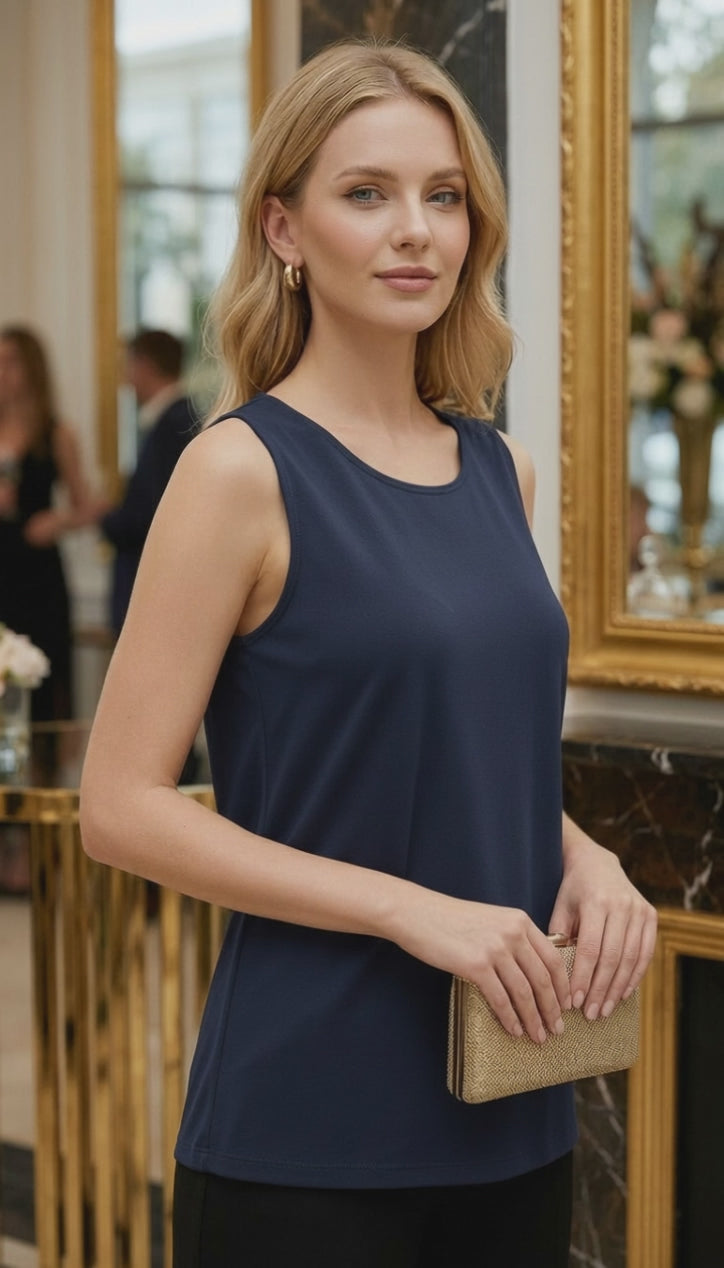 El BVD Berna es un básico imprescindible que combina comodidad, estilo y versatilidad para cualquier ocasión. Su diseño sin mangas y su corte moderno lo convierten en una prenda ideal para crear looks frescos y elegantes en días cálidos.